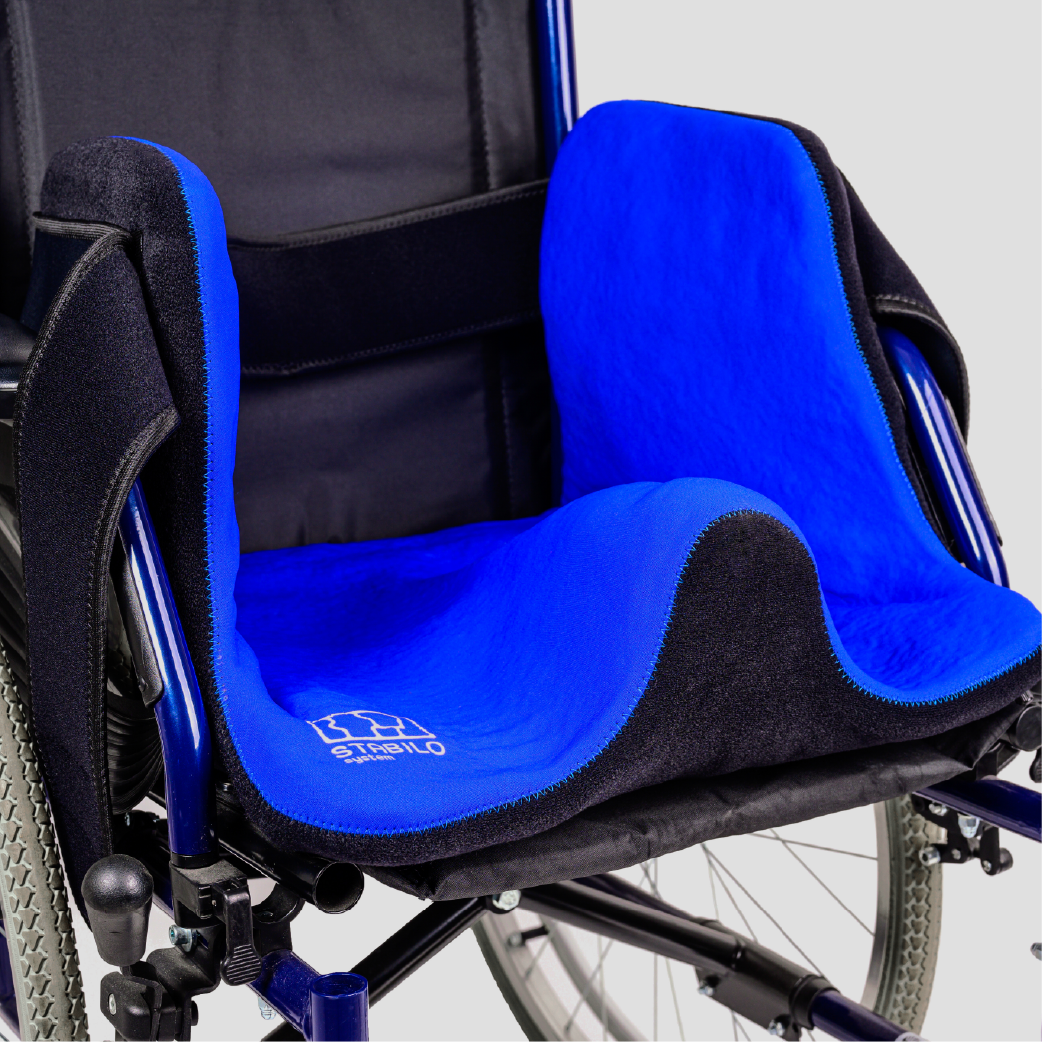 Poduszka Base Doro to zaawansowane siedzisko stabilizujące, wyposażone w klin odwodzący oraz boczne peloty stabilizujące całą miednicę. Jest rozwinięciem modelu Base Hilo, umożliwiając jednoczesną korekcję bioder i ich pełną stabilizację. Boczne peloty sięgające powyżej obręczy biodrowej korygują ułożenie miednicy przy jednoczesnym jej odciążeniu.