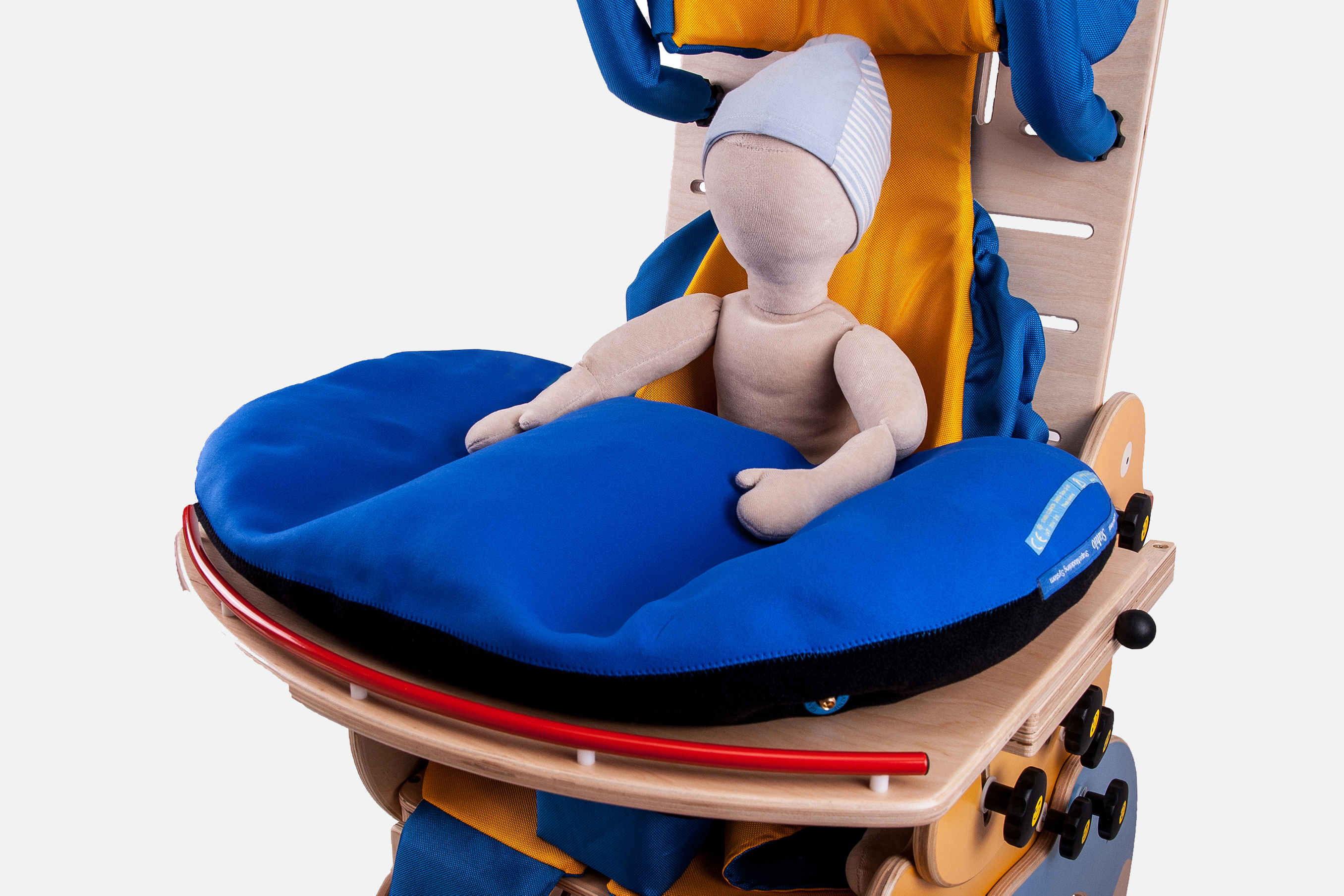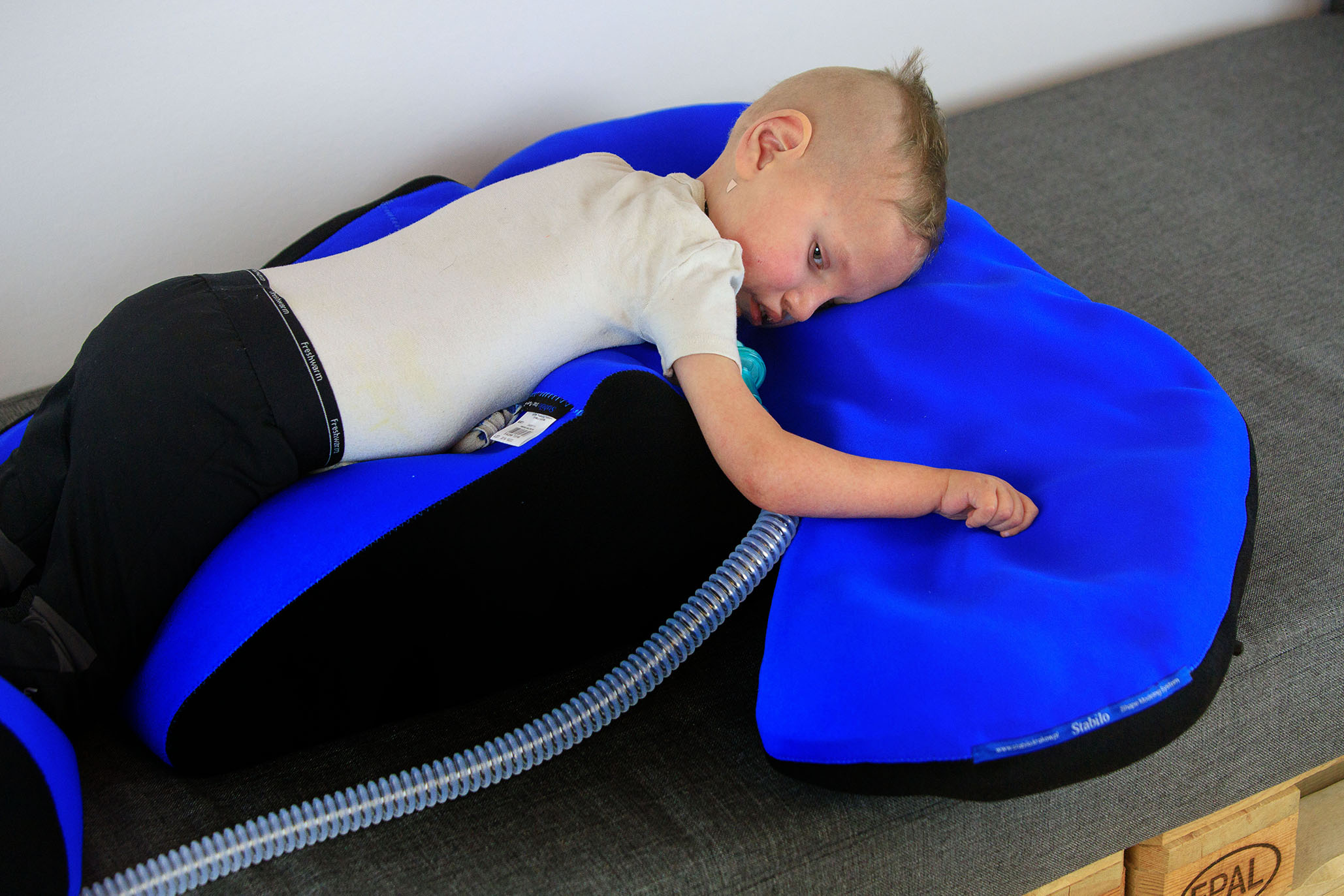 The banana-shaped vacuum cushion is part of a therapeutic shapes system that effectively supports daily rehabilitation. It is ideal for providing unconventional forearm support, adapting to the individual needs of the user.