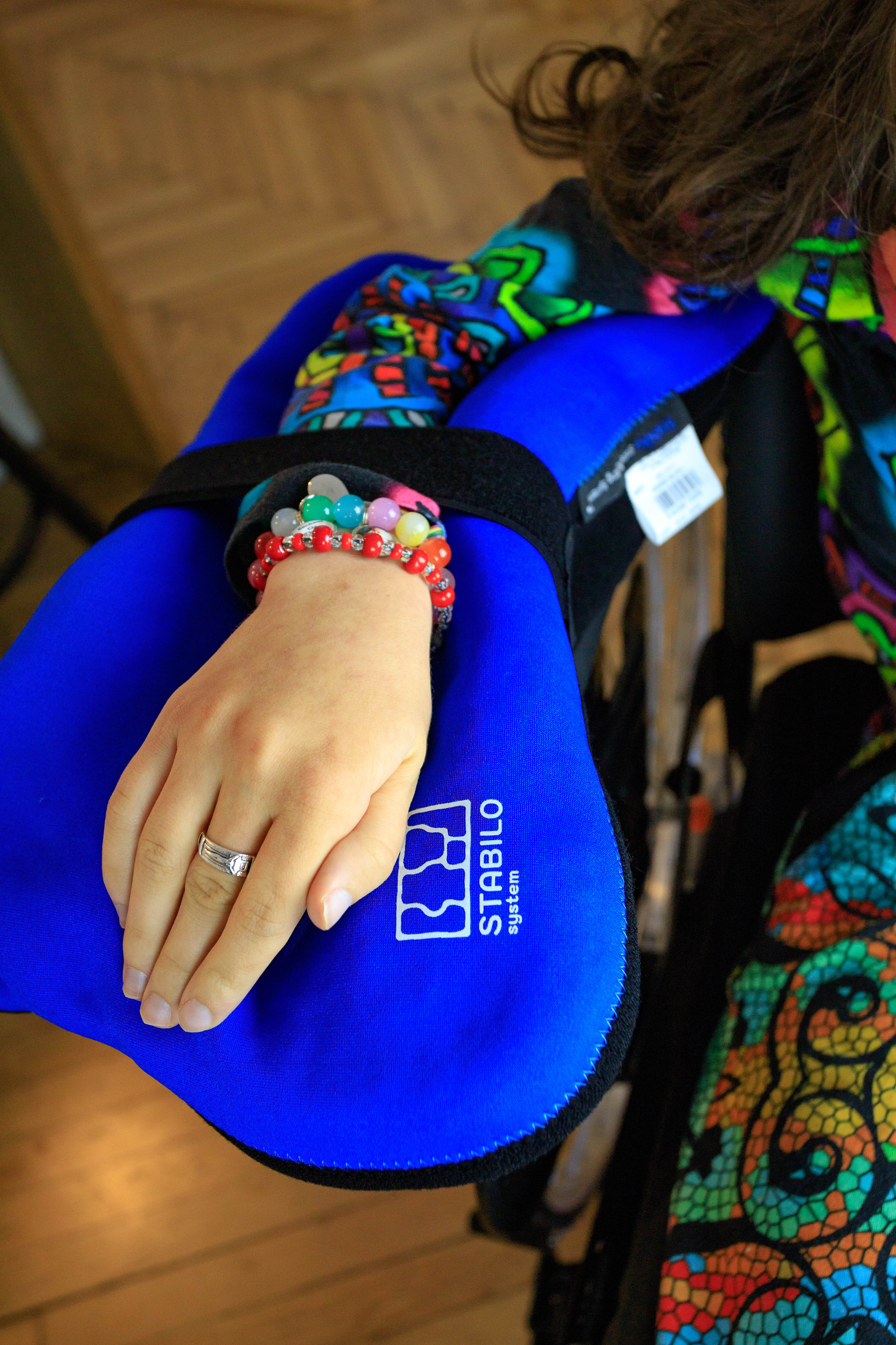 A moldable and easily adjustable armrest, ideal for wheelchairs and rehabilitation seating. It provides forearm stabilization and allows precise positioning and support of the hand.