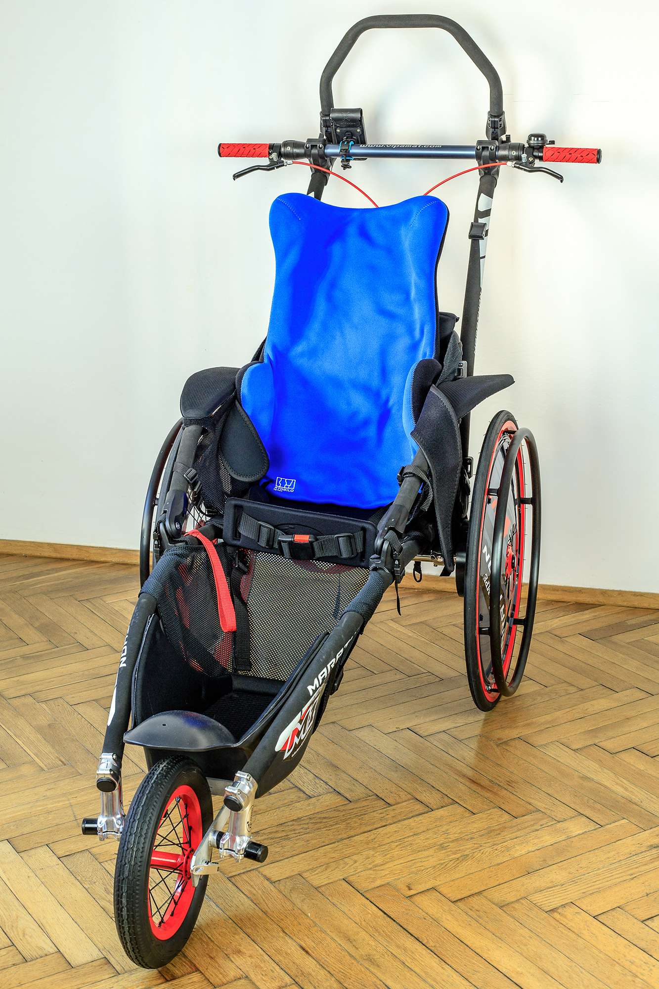 The back-stabilizing cushion with lateral pads provides comfortable support, aids in postural correction, and improves body control. Wide lateral pads and a large headrest stabilize the user, protect the cervical spine, and enable proper head alignment.